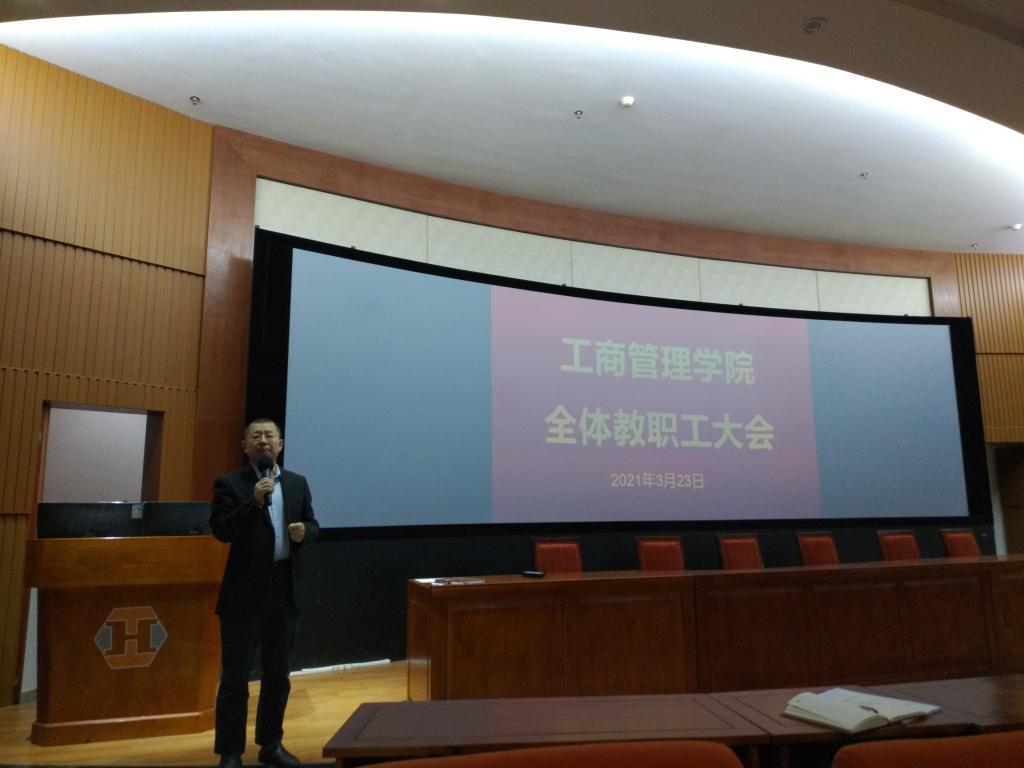 3月23日下午,工商管理学院在3D导游模拟实训室召开全体教职工大会,传达学校工作要求,部署学院近期工作。