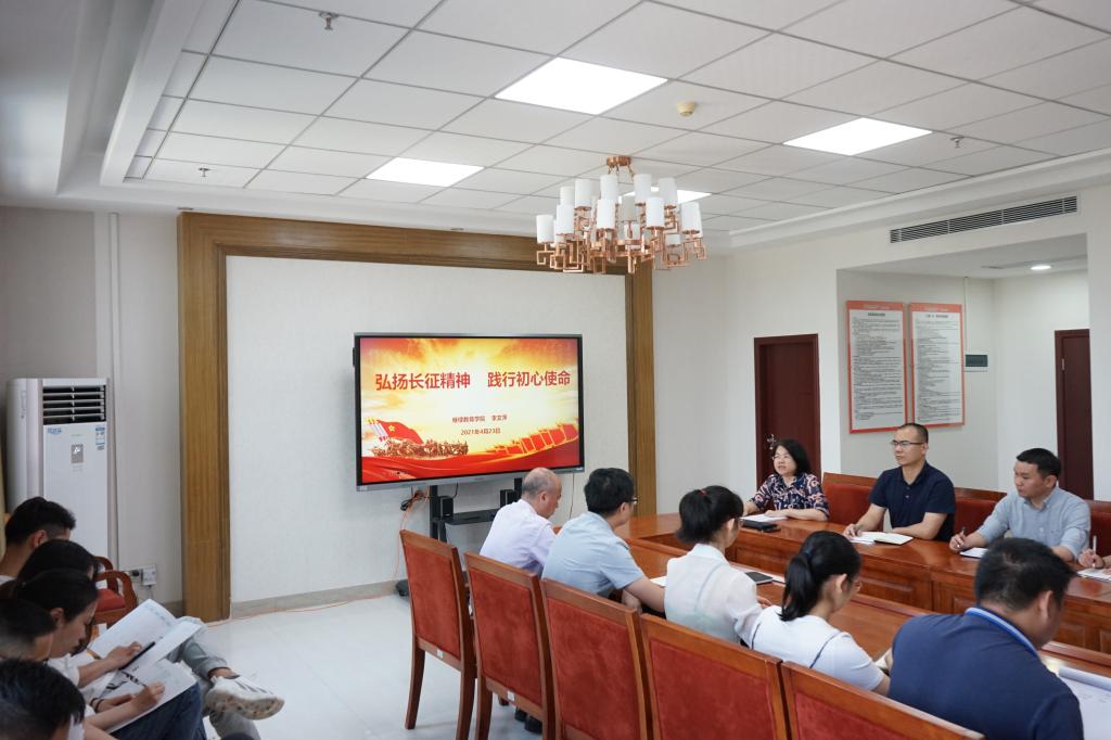 最后,李文萍同志结合继续教育学院当前工作实际情况和存在的问题,要求全体党员同志要发扬长征精神,努力工作,创造业绩,服务地方,服务学生,以建设“全国党建工作样板支部”为契机,主动作为,不断创新,发挥党建引领业务工作,践行立德树人的初心和使命,为我校继续教育事业的发展贡献力量。
