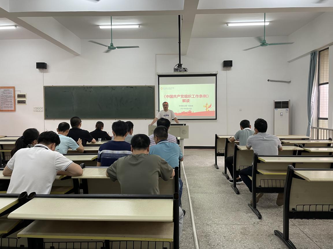 同时,教工第二党支部在实训楼D312也组织了《条例》集中学习。支部书记钟燕辉同志首先做了发言,介绍条例出台的背景,指出《条例》是我们党历史上第一部关于组织工作的统领性、综合性基础主干法规,是做好新时代党的组织工作、加强党的组织建设的基本遵循。在集中学习后,各党员同志进行研讨发言。