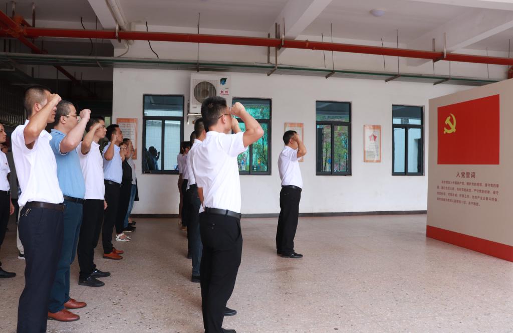 15:00,学院师生党员在机电楼一楼举行重温入党誓词暨“建党100周年海报展”开展仪式。