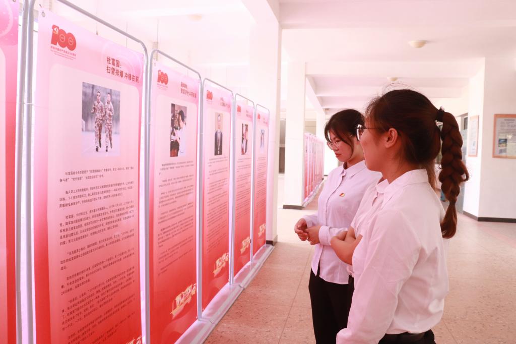 宣誓结束后,党员同志们移步到机电楼二楼参观“建党100周年海报展”。此次主题展以图文并茂的形式呈现,按照“历次党代会”、“红色精神”、“杰出人物”、“各时期重大事件”四大模块,展示了中国共产党团结带领全国各族人民为实现民族独立和人民解放、建设国富民强的社会主义国家而进行的战争、建设和改革的光辉历程。利用图片展厚植红色基因,把中华民族波澜壮阔的进步史、中国人民自强不息的奋斗史呈现给师生。