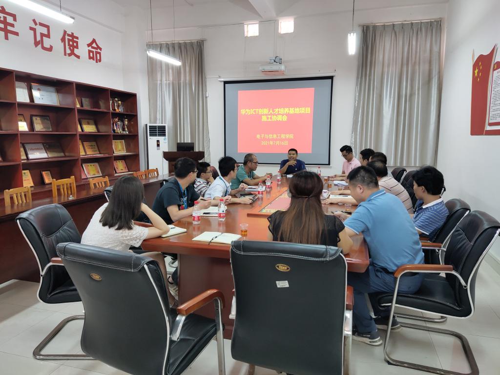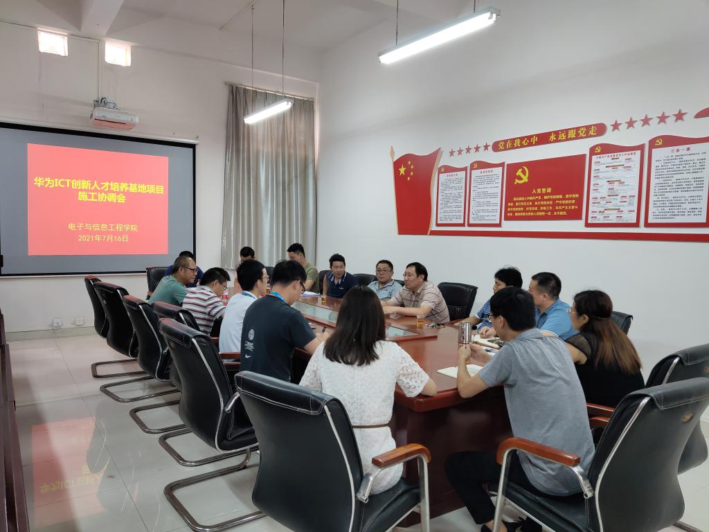 2021年7月16日,电信学院在学院会议室B307召开华为ICT创新人才培养基地项目施工协调会,电信学院王富宽院长、周永福副院长、我校资产后勤处后勤管理科负责人孙启兴老师和电信学院有关人员出席了会议,项目施工单位、装饰与安装工程施工单位和监理单位均派代表参加了会议,本次会议的内容是讨论施工细节、协调施工工序,目的是保证项目质量、加快推进项目进程。
