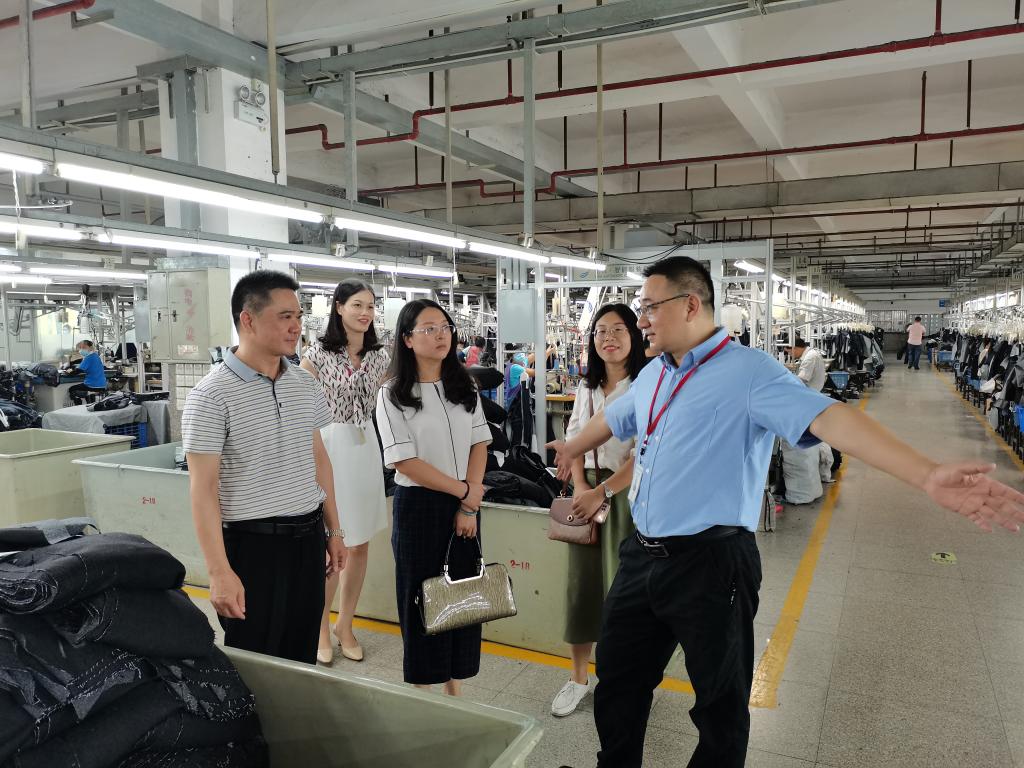 袁光华一行首先在刘厂长的引导下参观了新福东服装有限公司的车间和相关的机械设备,随后在会议室举行了双方座谈。