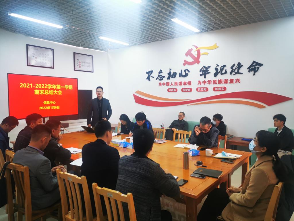 为全面总结2021年工作成绩与不足,明确2022年工作重点,科学部署下学期工作计划,1月6日,信息中心召开期末工作总结会议,信息中心全体人员与第三方运维外包人员参加会议,会议由信息中心主任杨文主持。