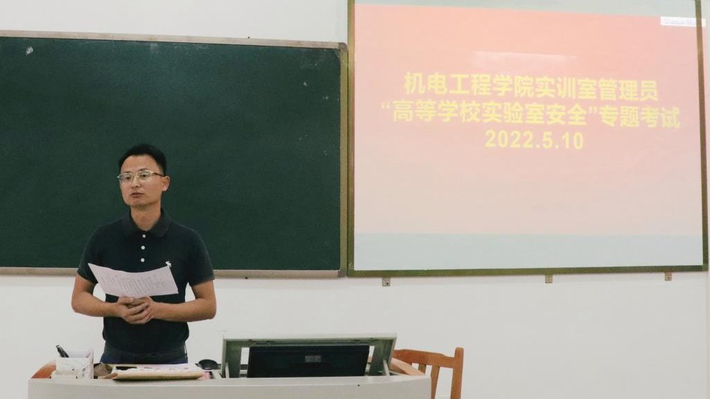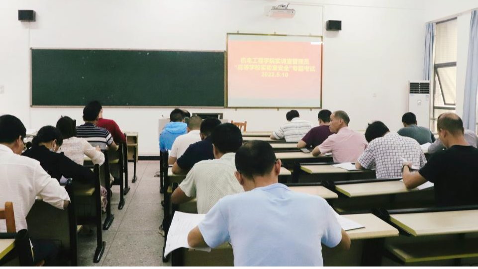 为增强实训室管理员的安全责任意识,提高业务知识及能力,5月10日,机电工程学院在实训楼D312组织了实训室管理员高等学校实验室安全专题考试,学院相关负责人及实训部全体人员参加此次活动。