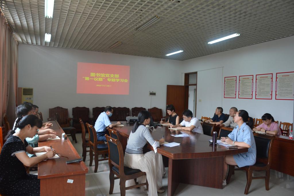 5月26日,图书馆党支部召开“第一议题”专题学习会,支部全体党员参会学习。