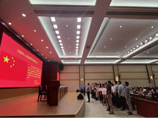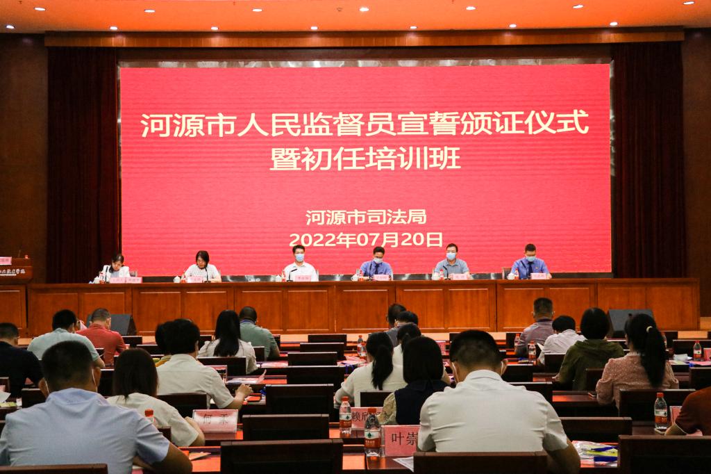 为加强我市人民监督员队伍建设,提升人民监督员依法履职能力和水平,更好地发挥人民监督员作用,7月20日,河源市司法局在我校举办2022年河源市人民监督员宣誓颁证仪式暨初任培训班。市司法局党组书记、局长李庆铎,市人民检察院党组成员、政治部主任吴宇峰,市司法局党组成员、政治处主任肖佳,易游app入口站官网继续教育学院院长李文萍出席活动。经过法定程序选任的33名新一届河源市人民检察院人民监督员,各县区司法局分管领导、相关科室人员共50余人参加了培训。