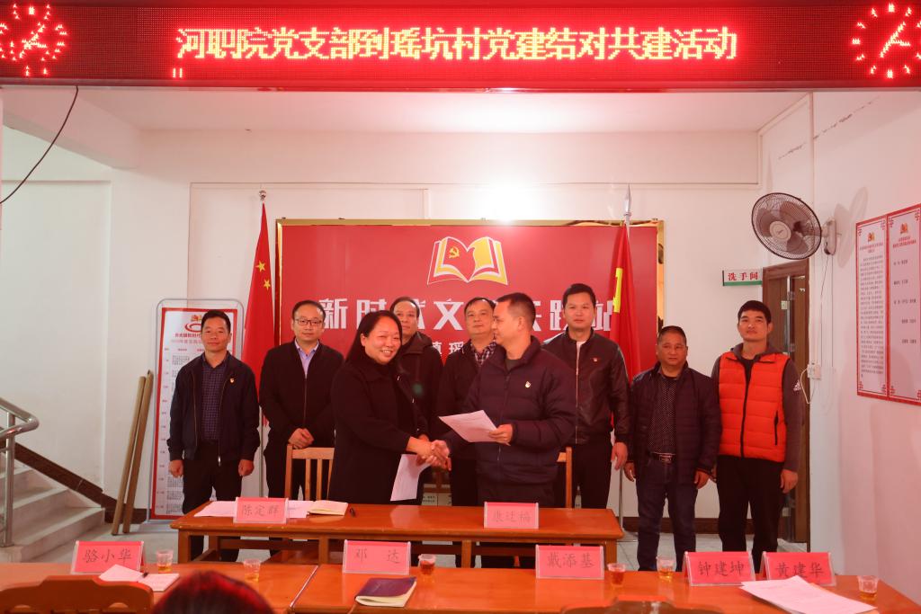 活动现场,双方首先互相介绍了所在党支部的基本情况,达成了双方共建的目标、任务、思路、举措等方面的共识,签署了共建协议,并举行了揭牌仪式。双方一致认为要以此为契机,推动基层党建工作与乡村振兴工作深度融合,为瑶坑村的建设和发展做出贡献。