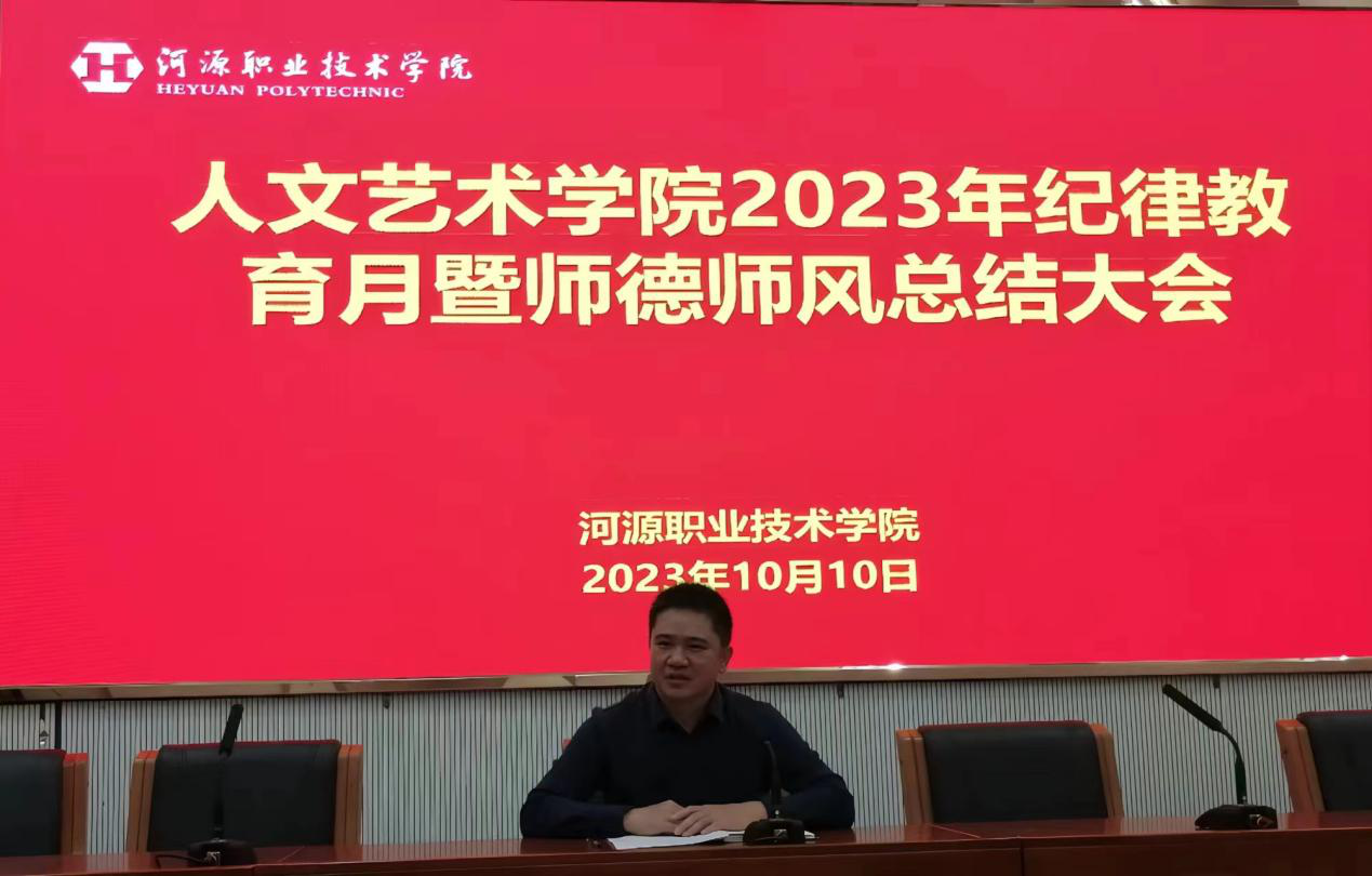 10月10日15:00,按照省教工委、市委办有关通知要求和《易游app入口站官网关于2023年开展纪律教育学习月活动的实施方案》部署要求,人文艺术学院在行政楼C108举行纪律教育学习月暨师德师风主题教育活动总结大会。学校副校长袁光华、人文艺术学院全体教职工参加了此次会议。