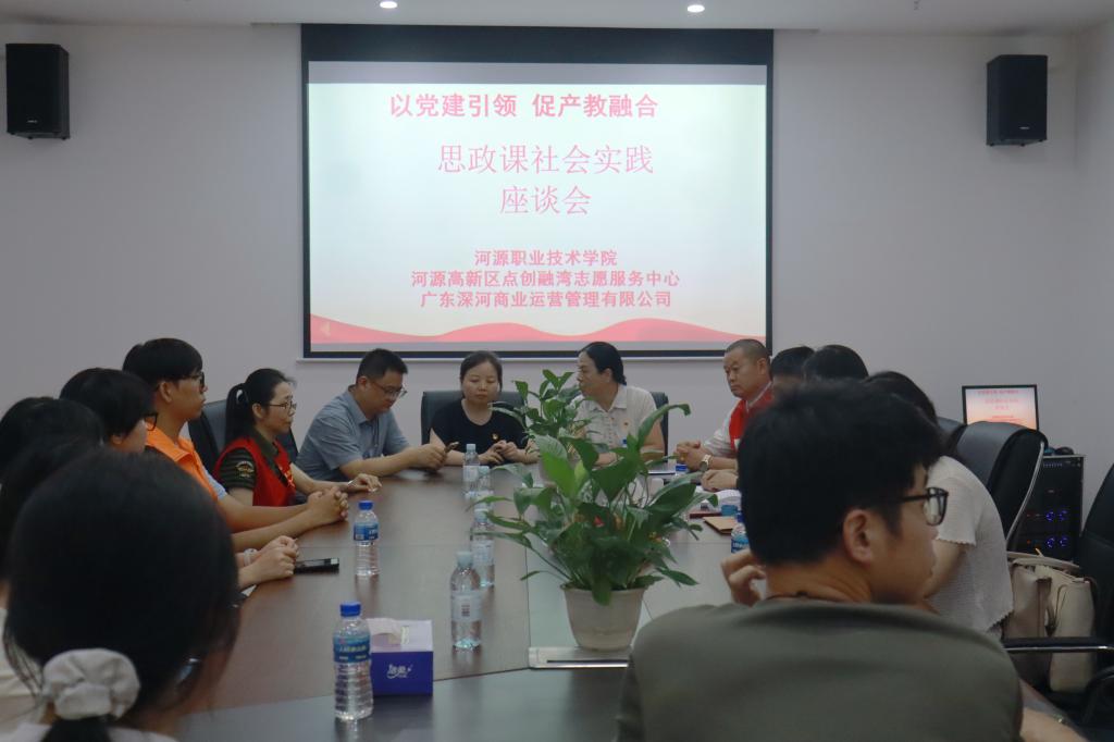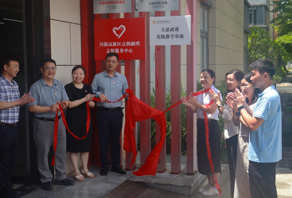 为深入贯彻落实全国高校思想政治工作会议精神,落实立德树人根本任务,推动大学生思想政治教育创新与实践深度融合,7月1日上午,我校与河源高新区点创融湾志愿服务中心、广东深河商业运营管理有限公司,三方在深河共建产业园区党群服务中心正式签署协议并揭牌,共建“大思政课”实践教学基地。马院办公室负责人徐微、思政课实践教学中心主任毛丹、思政教师施钰泷、黄金萍,高新区点创融湾志愿服务中心理事长陈浩山,广东深河商业运营管理有限公司总经理朱奕鸿,以及20余名学生代表及志愿者参加活动。