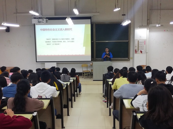 近期,电信学院在教学楼D208开展学习贯彻党的十九大精神专题讲座。参加人员有嵌入式技术与应用专业16、17级全体学生,由辅导员丁家龙主讲。
