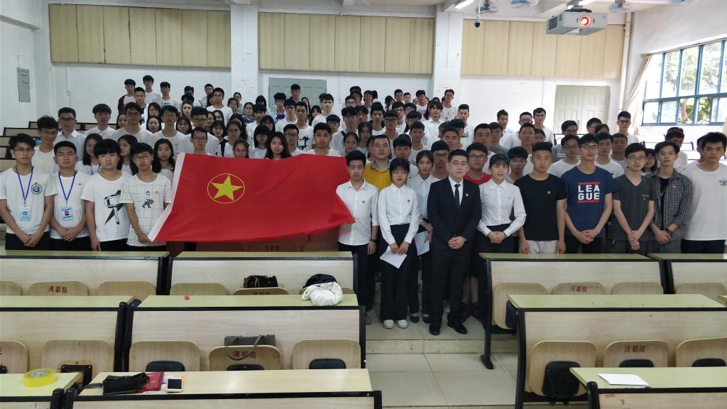 2018年4月23日,为弘扬五四精神,践行青春誓言。电信学院在教学楼D107开展电信学院重温入团誓词仪式活动。出席人员有团总支书记杨日奎、团总支成员、各专业团支部副书记、各班级团支部书记、各专业团员代表20名,由团总支副书记翁宇芳主持。