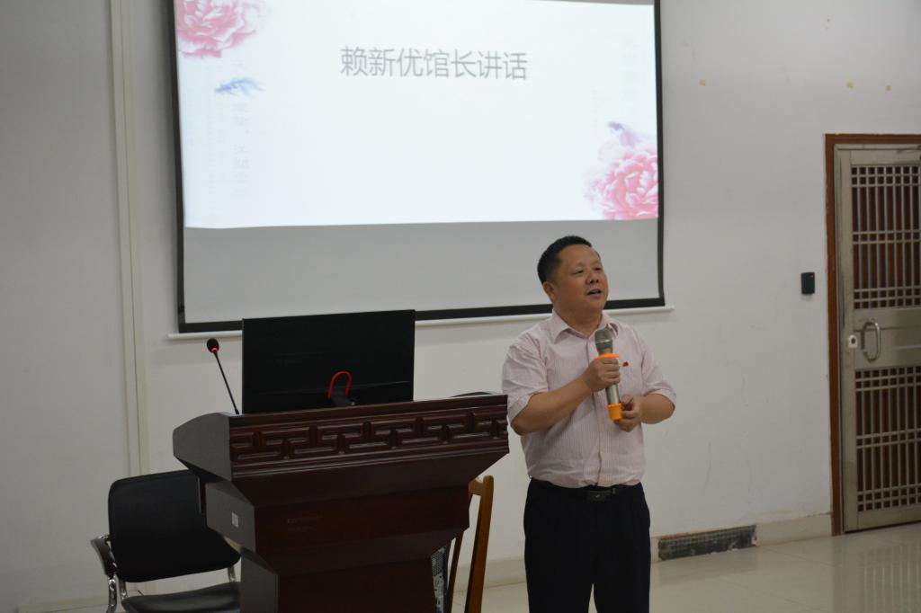 首先,赖新优对整个读书月活动的开展情况进行了总结,这次读书月既有传统活动的传承,又开创了许多新的活动。他对参赛学生在读书月各项活动中的表现给与了高度肯定,认为本次读书月系列活动参赛水平高、参与人数多、效果好。随着图书馆中央空调的启用,图书馆阅览环境更加清凉舒适,他希望喜欢阅读的同学能带动更多的同学到图书馆来。