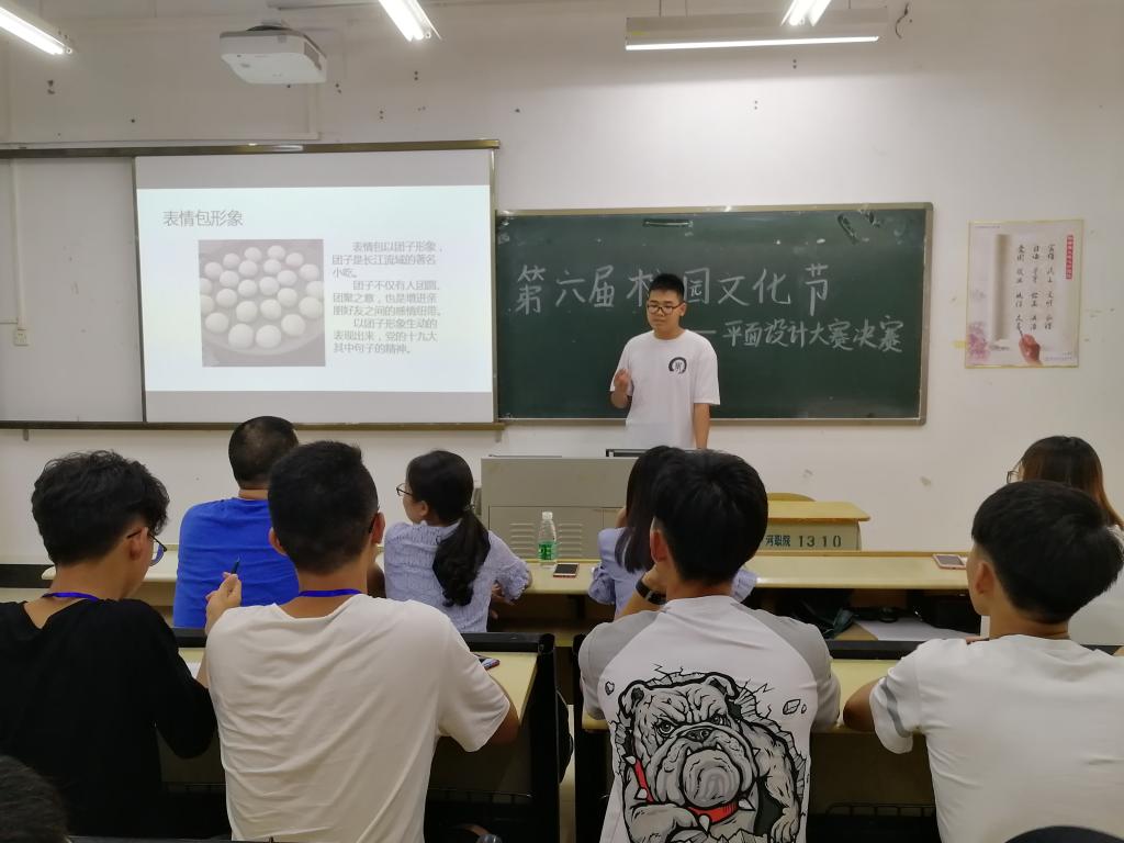 2018年5月29日,电信学院在教学楼B109举行第六届校园文化节平面设计大赛决赛。出席比赛人员有团总支书记杨日奎老师、评委团成员、比赛选手、学生代表。比赛由陈冬吟和陈伟聪同学主持。