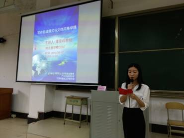6月12日下午,英语教育专业邀请来自广州外国语协会的执行会长潘雪峰教授,在D207阶梯教室做了一场题为“写作思维模式与文体风格举隅”的讲座。广州外国语协会办公室主任罗春兰、学会秘书古春玲、人文学院的老师及126名学生出席了讲座。讲座开场主持人是15英语教育五年制的叶慧敏同学,职业的着装、沉稳的气场和流利优美的英语为此次讲座揭开了序幕。