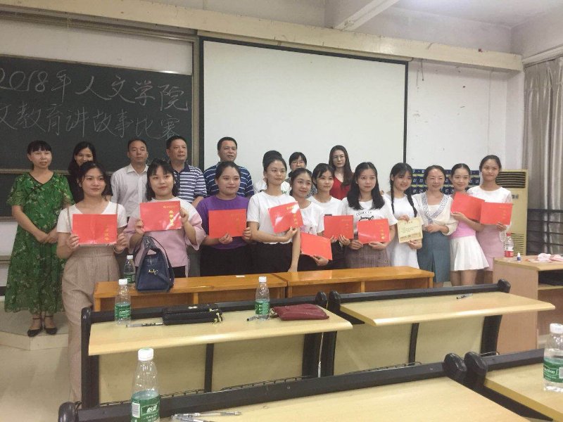 2018年6月26日晚上,人文学院语文教育专业在教学楼C201举行了“讲故事”比赛,本次比赛邀请了朱玉梅、李莉等专业老师担任评委工作,出席本次比赛的嘉宾有李日新、郑尔君、黄志基、骆宇颖等老师。