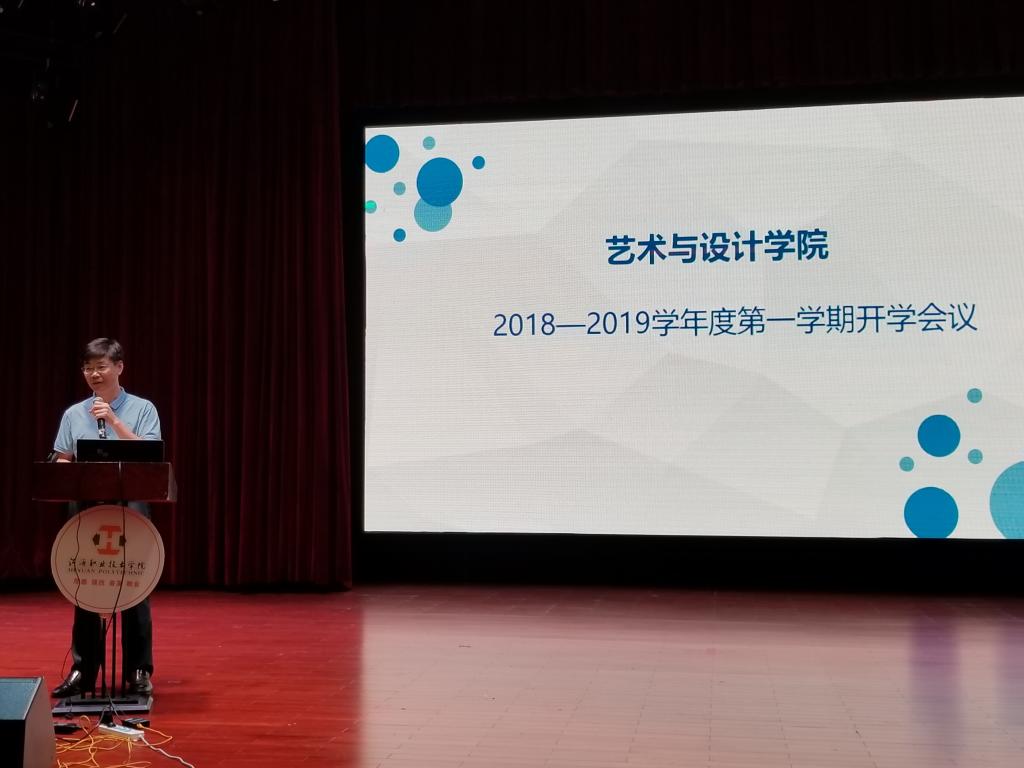 9月1日上午10点,艺术与设计学院于演播厅召开学期大会,杜伟祥院长、学院领导班子以及所有教职工出席此次会议。