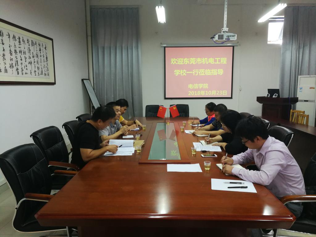 10月23日,东莞市机电工程学校一行3人到我校参观交流。我校教务处李文萍副处长、电信学院周永福副院长热情接待了来访一行,并在电信学院会议室举行交流座谈会。