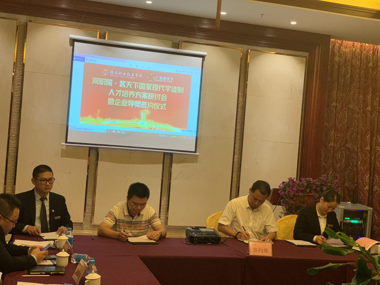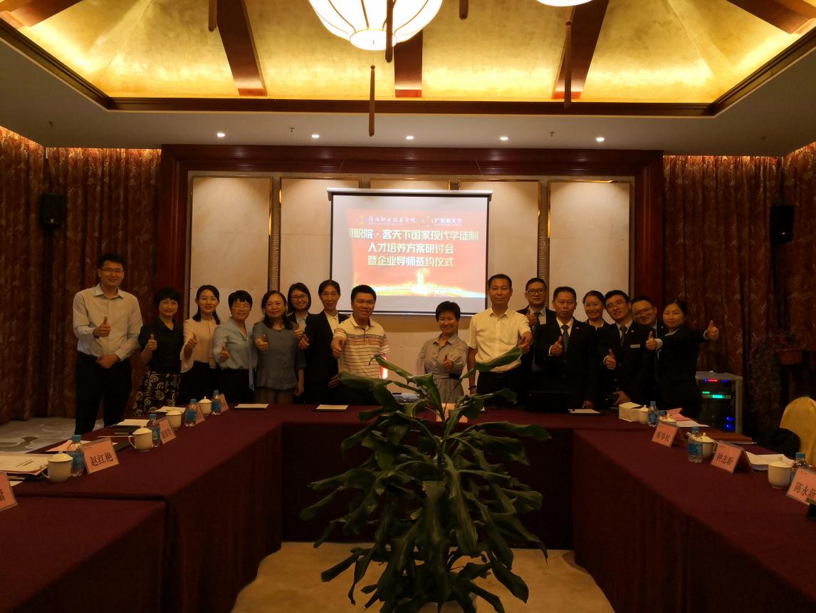 为进一步完善国家现代学徒制人才培养方案,10月26日下午,工商管理学院在河源客天下召开现代学徒制人才培养方案研讨会并举行企业导师签约仪式。客天下总经办主任兼综管部总监曾金杰、客天下文旅公司总经理李国锋、客天下学徒制导师,易游app入口站官网教务处教学科科长钟燕瑾、质量督导处督导专员张晓燕副教授、工商管理学院副院长张颖、酒店专业老师出席研讨会。会议由梁晴苑、曾惠华主持。